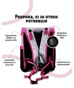 Ergonomsko hrbtišče pomaga ohranjati pravilno držo. Hrbet je bolj podprt. To je pomembno pri vsakodnevnem nošenju. Otrok se manj sključi.