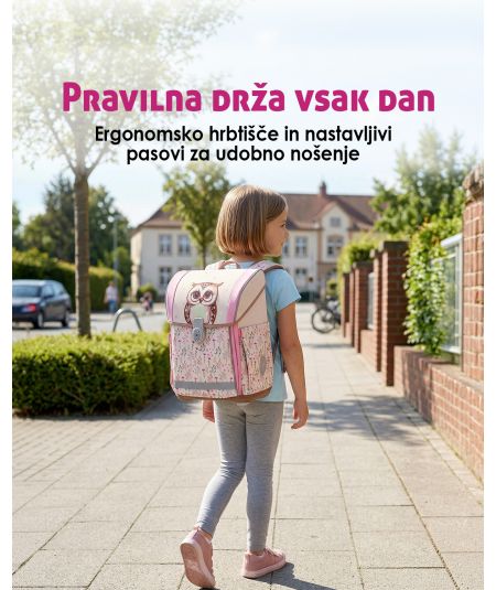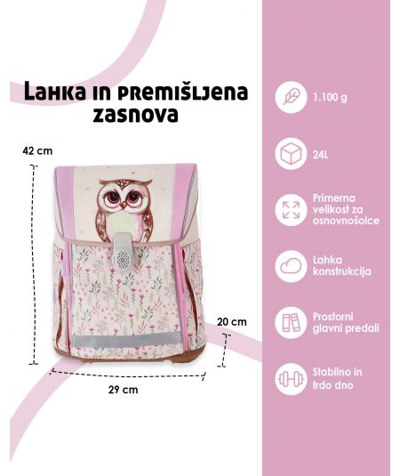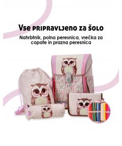 ABC123 TORBA ŠOLSKA 4-DELNI SET ERGO FLEXI SOVA