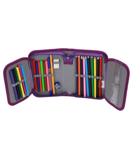 Polna peresnica ABC123 z motivom sove vključuje 27 kosov šolskih potrebščin, kar omogoča enostaven začetek šolskega leta. Dimenzije peresnice (13 x 4 x 20 cm) zagotavljajo, da boste v njej našli prostor za vse, kar potrebujete. Izdelana iz trajnega poliestra, obljublja dolgotrajno uporabo in odpornost na obrabo.